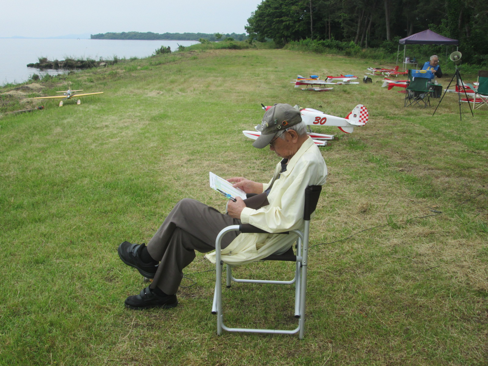 19.先週地元湖岸整備Grと合同で草刈りした会場は 見晴らし良くどこでも機体を広げれる 心地良い状態です! |