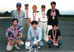 平成9年6月15日、この日は朝から雨が降りそうな雲行きで、空模様が心配でしたが、1日中曇り空、時折ぱらぱらとする程度で、最後の選手まで無事にフライトを終了することが出来ました。