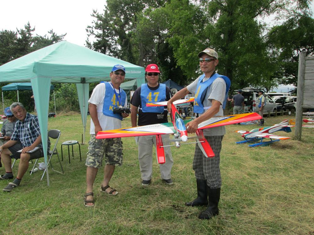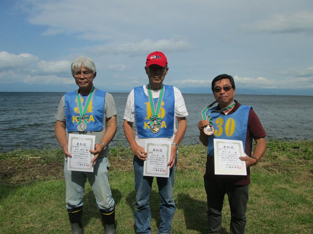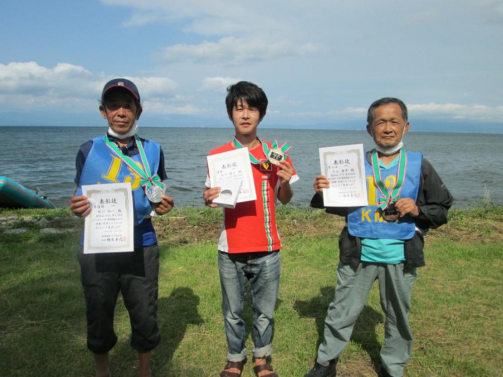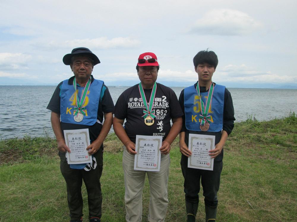 ![]() オープン級入賞の皆さん 2位車田さん、1位平田さん、3位清水さん |