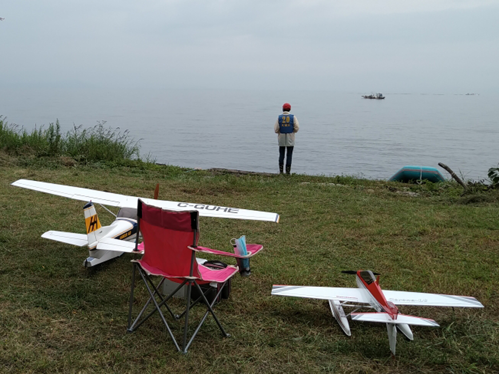 | 第59回KMA琵琶湖水上機大会が、10月4日に滋賀県高島市新旭町の琵琶湖西岸で開催されました。9月6日の予定が台風接近で一か月延期されての開催です。 まだまだコロナウィルス感染症が続いている中ですが、政府の景気刺激策もあって、湖西道路はどこも他府県ナンバーの車が多く、大渋滞していました。 さて、大会の方は、いつも通りの前泊の役員さん達により、綺麗に草刈された会場でスタートです。 天気は曇天ですが、湖面は珍しく凪状態、風はわずかに感じる程度のベストコンディションです。今回の参加者はフライインのみで15名の参加者になりました。 8時前に受付開始、前大会同様、受付時のマスク着用・手のひら消毒・ソーシャルディスタンス、念のため赤外線による体温測定などの対策を実施しての進行です。 8時15分頃には開会式、島田委員長による挨拶と橋本副会長の挨拶、加藤委員によるフライトの注意事項説明があり、全員の記念撮影を行って秋のフライインのスタートです。 1回目は各1機づつ順番に持ち時間の中で、自由にフライトを楽しんでもらいました。他の選手、見学者が見守る中、操縦者は競技会とは違った緊張のひと時です。それでも、10時過ぎには全員が飛ばし終えました。時折、黒い雨雲が通り、小雨がぱらつきましたが、湖面は相変わらず、凪状態、こんなベストコンディションが続くのは久しぶりです。 今日の参加者は非常に幸運でした! それでも、2回目の飛行は気が緩んだのか?緊張が途切れたのか?トラブル発生、救助艇の出番が増えました。12時前には2回目のフライトも終了して、食事休憩としました。 食事が終わった後、亡くなられたラジコン好きのお父様の数々の遺品を遺族の方が持ち込まれ、それを当日の参加者・見学者に分けて頂き、遺族のかたも貰って頂き感謝しますとのコメント、我々も沢山の品々を頂いて大感謝で、楽しいひと時を有難う御座いました。 さて、午後のフライトは、ゼッケン順に拘らず自由フライトとして、楽しんでもらいました。午後2時前には皆さん充分楽しみましたと言うことで、閉会式に移り、協賛品の抽選を行って、最後に委員長より来年も元気にお会いしましょうと再開を約束して、お開きとしました。 今大会も無事終了することができましたこと、参加選手の皆さん、またお手伝い頂いた役員の方々に、心から感謝いたします。有難う御座いました。 最後になりましたが、今回御協賛頂きました会社様は以下の通りです(順不動、敬称略) 株式会社テトラ、ダイモ株式会社、カシオペア、双葉電子工業株式会社、株式会社OK模型、株式会社マルク、有限会社エアクラフト、株式会社斎藤製作所、小川精機株式会社、ユーキ模型、プラネット、三和電子機器株式会社 この場をお借りしまして厚くお礼を申し上げます。 (文、写真、データ:KMA 橋本実) |
